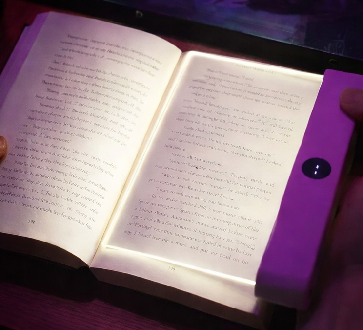 Our optical-grade panel delivers perfectly even, contained light directly to the page, eliminating glare and shadows while keeping your partner asleep.
